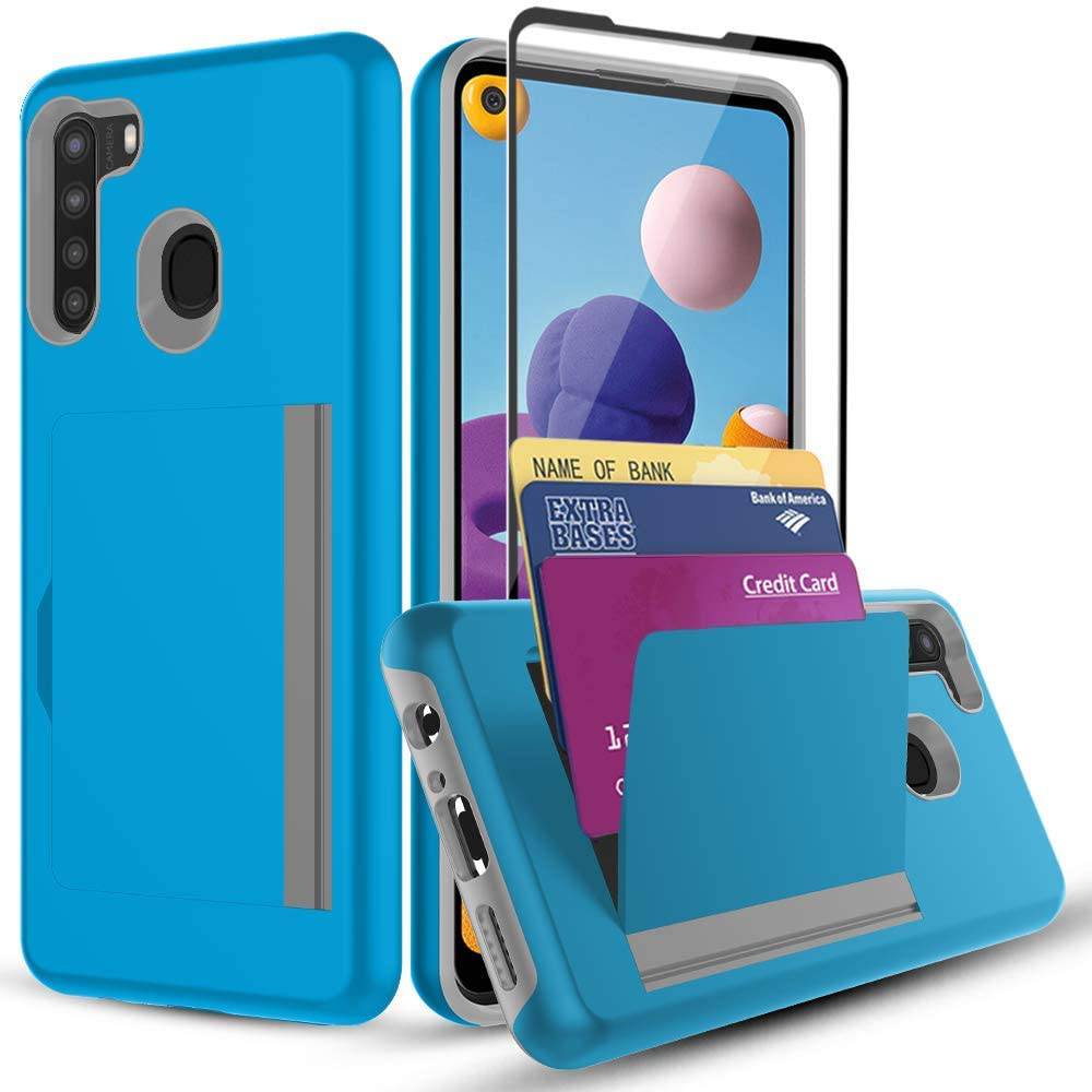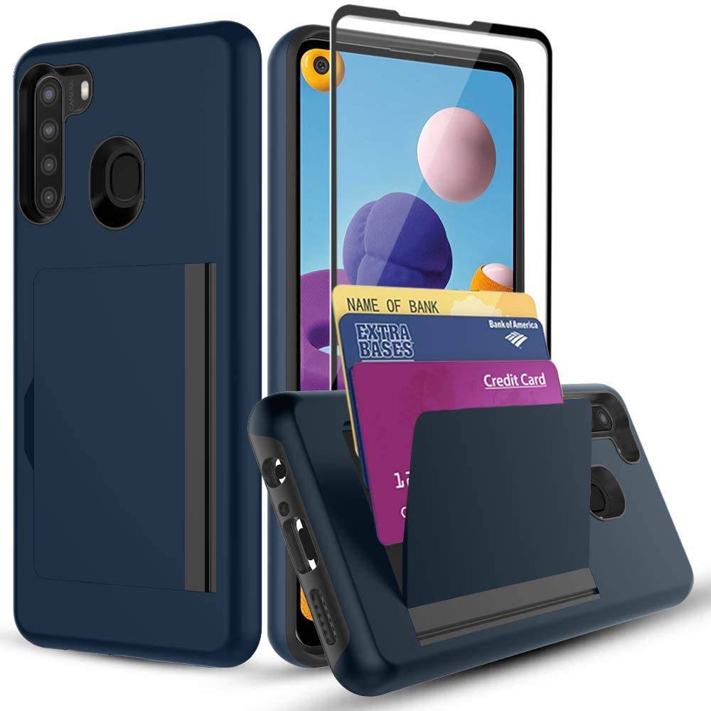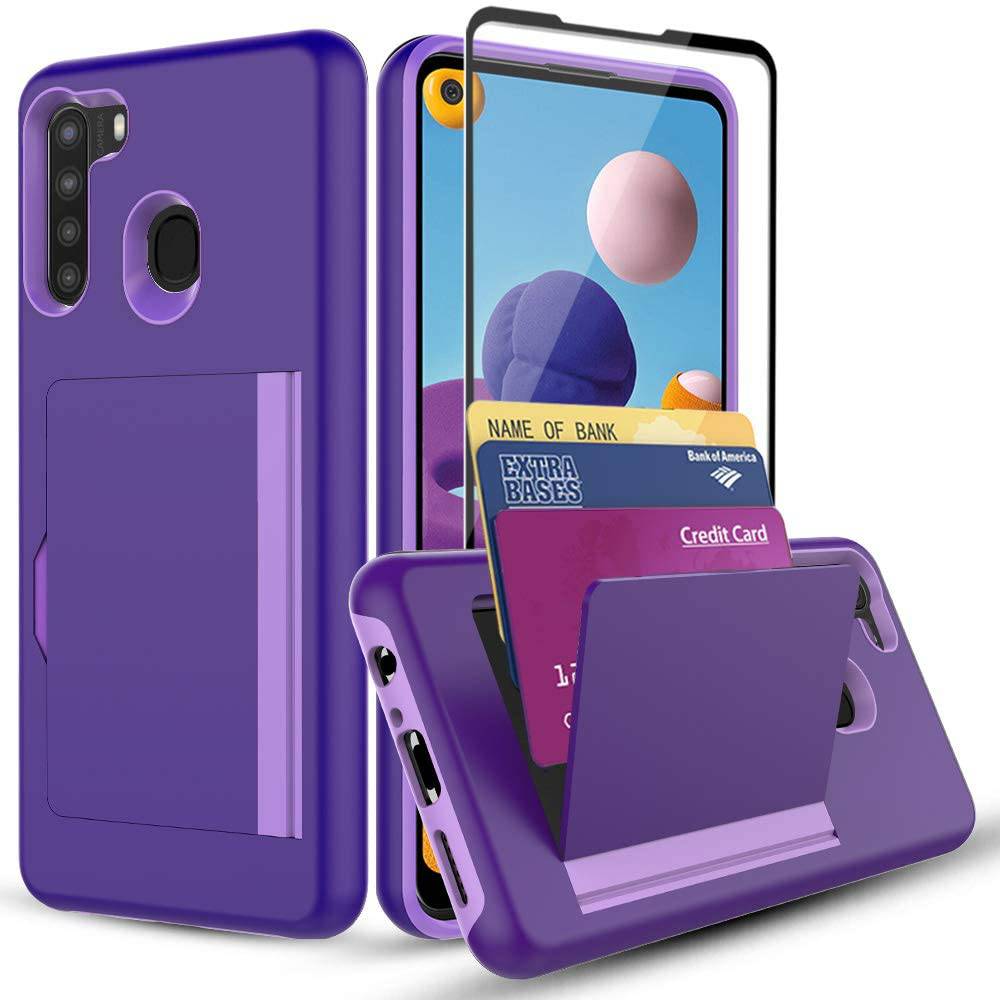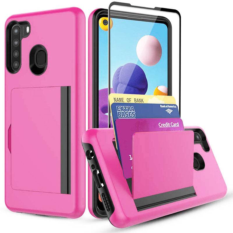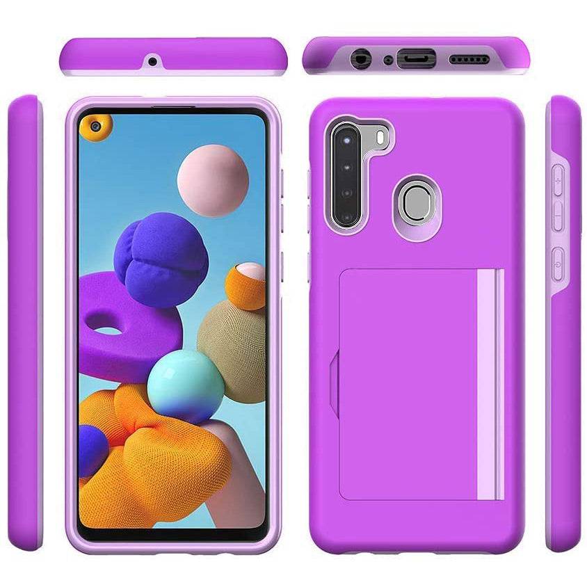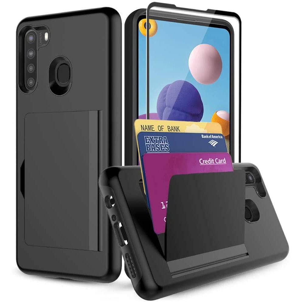 Armor Protective Card Holder Case for Samsung A21(US) With 1 PACK Screen Protector