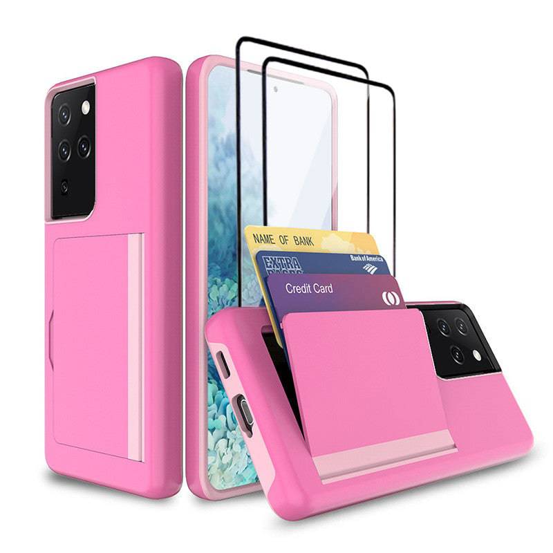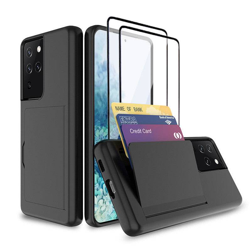 Armor Protective Card Holder Case for Samsung S Series With 2-Pack Screen Protectors