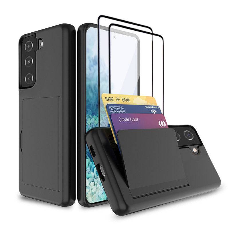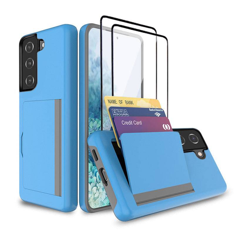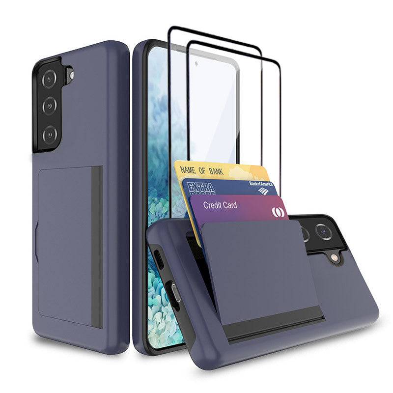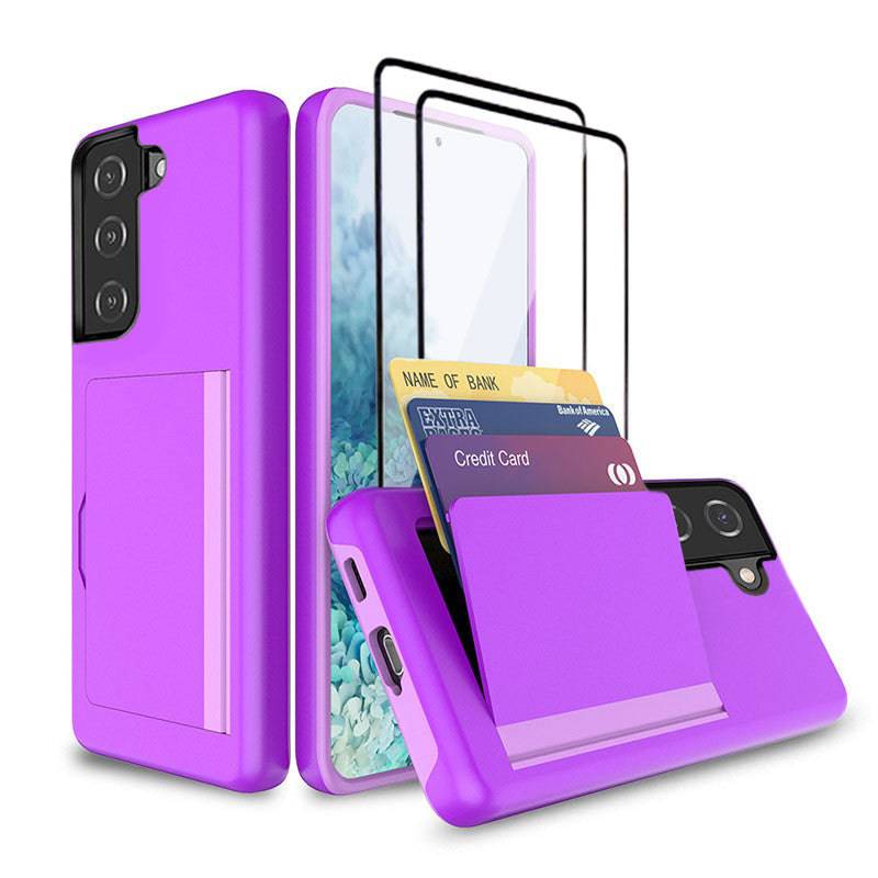 Armor Protective Card Holder Case for Samsung S21 FE(5G) With 2-Pack Screen Protectors