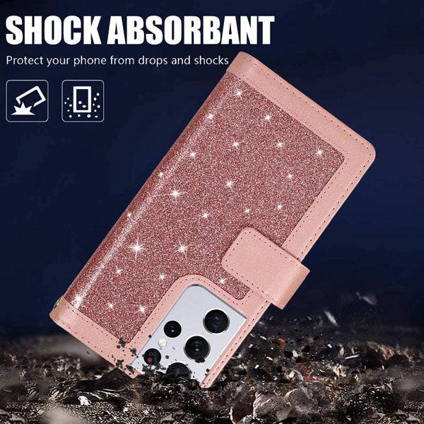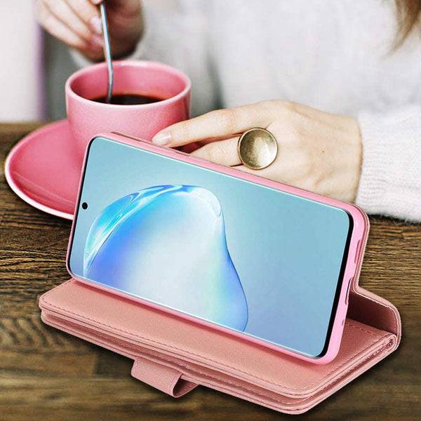 ▶[LARGE CAPABILITY+WRIST STRIP]:Inside features 9 card slots,1 zipper coin pocket, 2 side pockets conveniently store your ID, license,photo,cash and credit cards.Detachable LEATHER HAND STRAP to allow for easy fastening and access to your Phone without hassle.