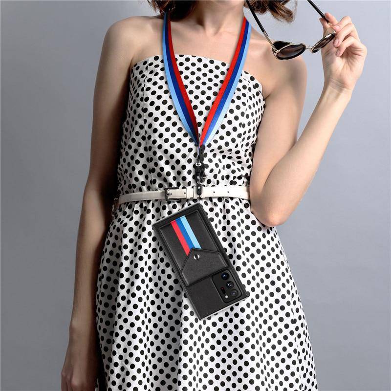 Lanyard Leather Wallet Card Holder Stand Phone Case For Samsung Galaxy