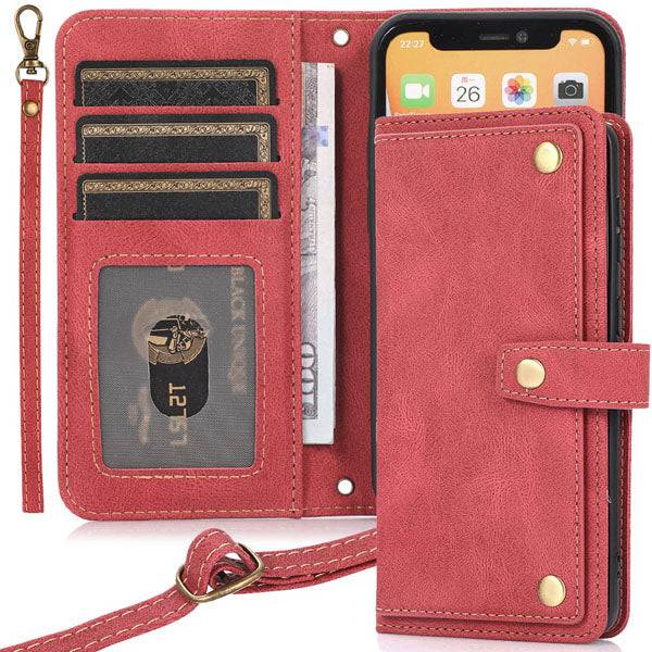 • Large Capacity Crossbody Wallet Case--Included 9 card slots and 1 money pocket to carry your cards including credit cards, ID Cards, driver's license, and so on. Of course, you can also put some money in the cash pocket. Don't worry your cards or money will slide from the crossbody phone case, because the thie case will ensure the complete enclosure of the wallet part.