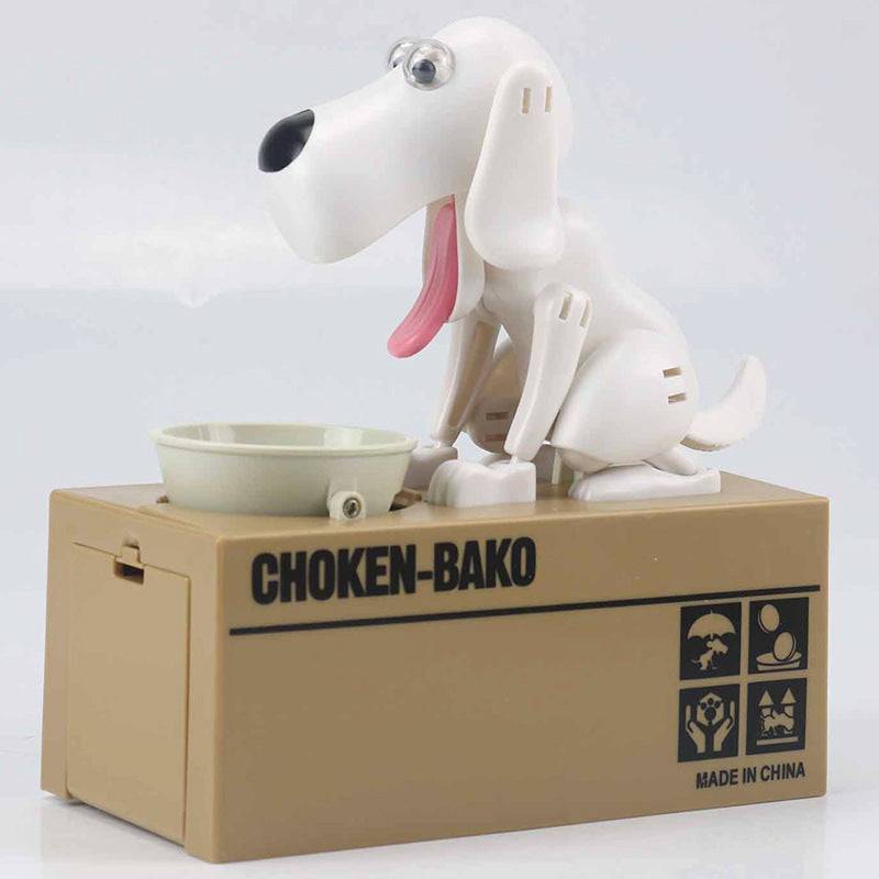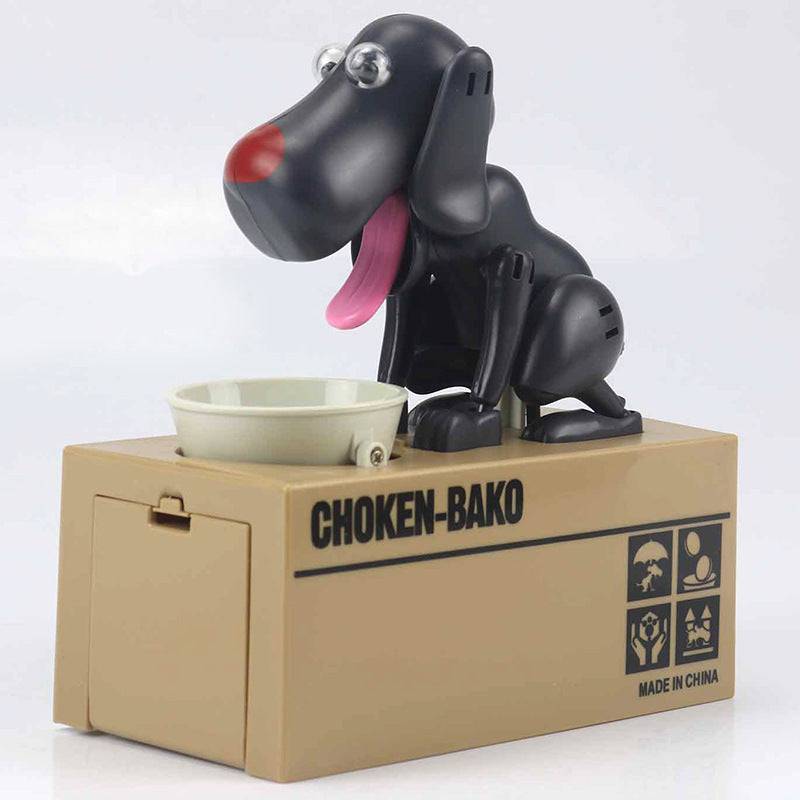 Drop some coins into his dish and he immediately goes for it, with a dog-like enthusiasm that you'll love! The coins are stored inside the box after they "eats" them up, making it a great way to promote savings for all ages!