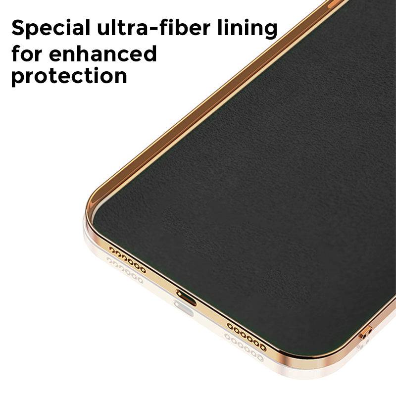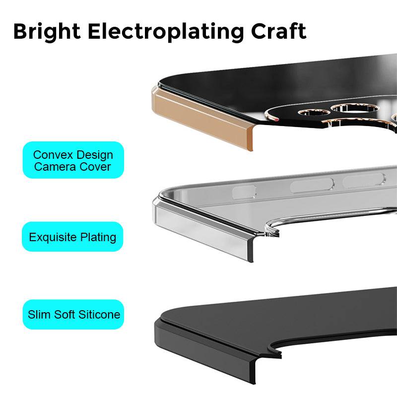 This phone case with raised shock-absorbent edge for protection on the screen and camera. Flexible TPU bumper sparkly plating rose gold slim edge, soft comfortable touch feeling and easy to install and remove the case.