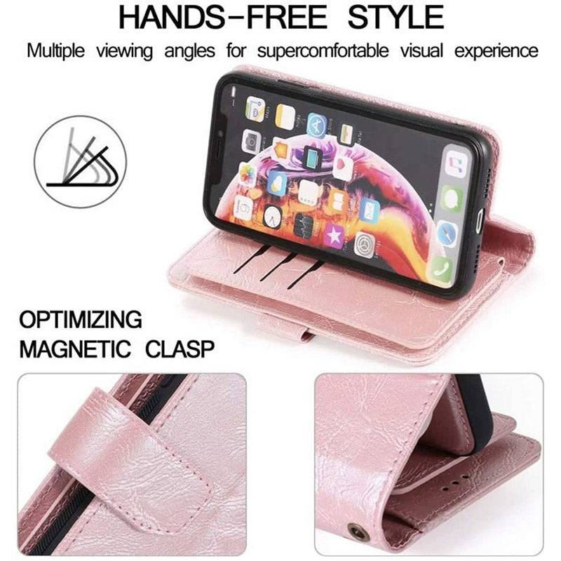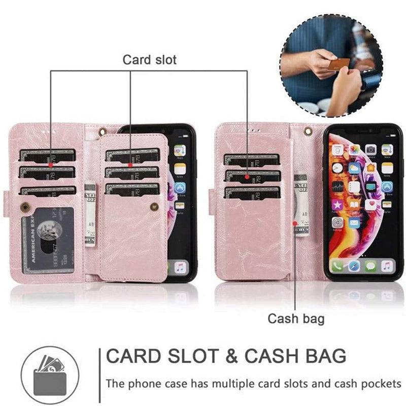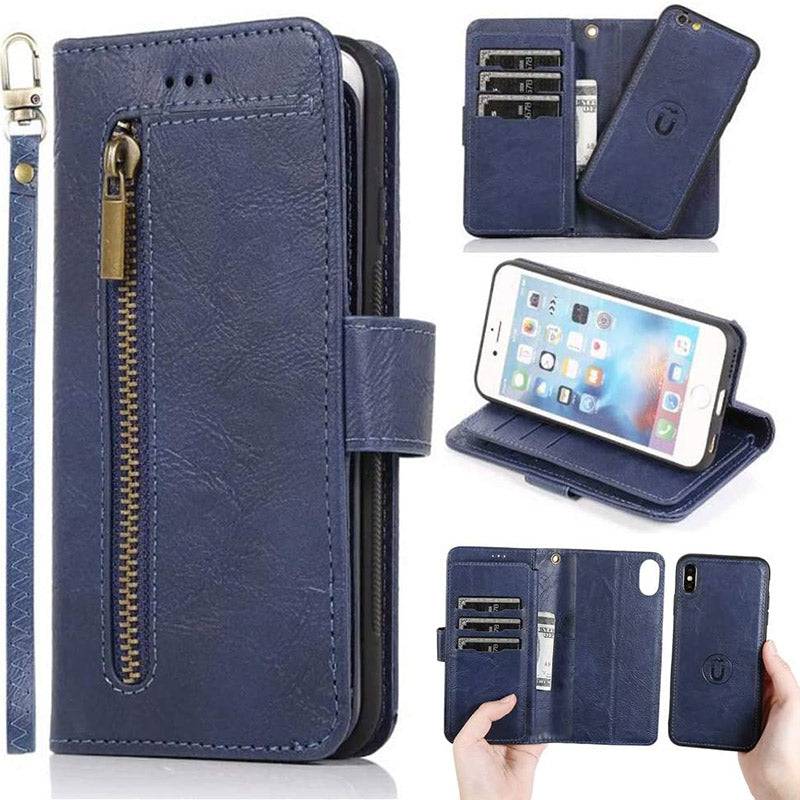 Detachable Flip Folio Zipper Purse Phone Case for iPhone Xs Max