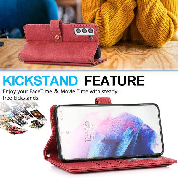 Leather Crossbody Shockproof Wallet Phone Case for Samsung S21 Plus