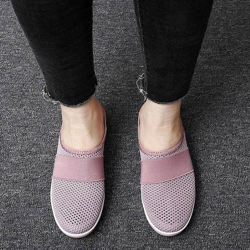 Libiyi Women Daily Fly Knit Fabric Summer Air Cushion Mule Slippers