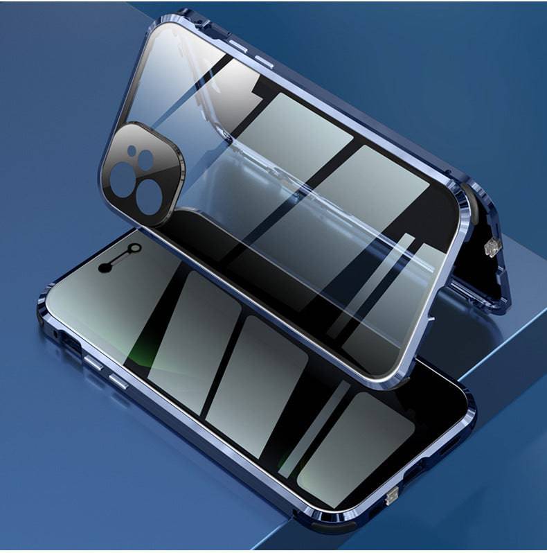 Coque en verre à boucle double face nouvellement améliorée, autobloquante Conception de serrure double face, comment ne peut pas être ouverte . Il est robuste et efficace pour protéger votre téléphone portable des blessures. Par rapport aux coques en verre ordinaires du marché, il n'y a pas de verrouillage, l'écran cassé s'envolera lorsque le téléphone tombe.