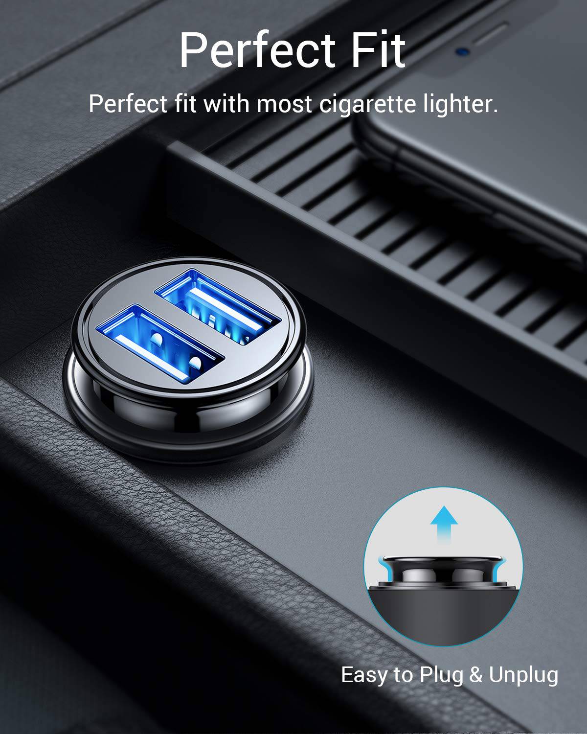 ✅TAILLE COMPACTE : Avec un corps de la taille d'un pouce (taille: 1,7 pouces * 0,9 pouces), ce mini adaptateur de chargeur de voiture se marie parfaitement avec la plupart des allume-cigares de voiture et s'adapte confortablement au bord de la prise. Notre plus petit chargeur de voiture USB à ce jour ; il est portable et vous pouvez l'emporter partout.