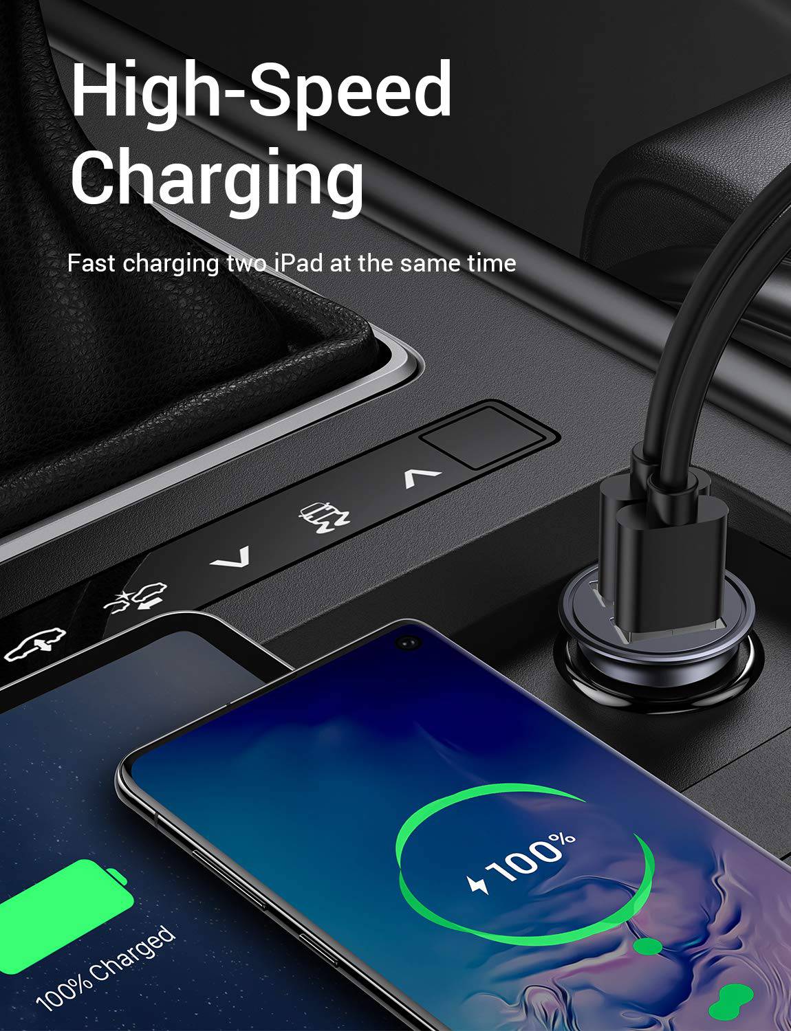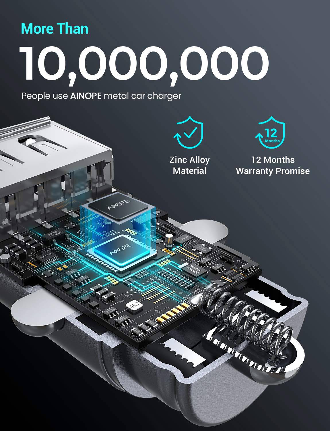 ✅ MATÉRIAU ENTIÈREMENT MÉTALLIQUE : Le corps entièrement en alliage de zinc est résistant aux rayures, de conception agréable et d'utilisation durable. Un matériau de haute qualité laisse votre chargeur de voiture USB toujours comme neuf. Le chargeur de voiture en métal amélioré ne surchauffera pas à des températures élevées , ce qui est plus sûr que celui en plastique.