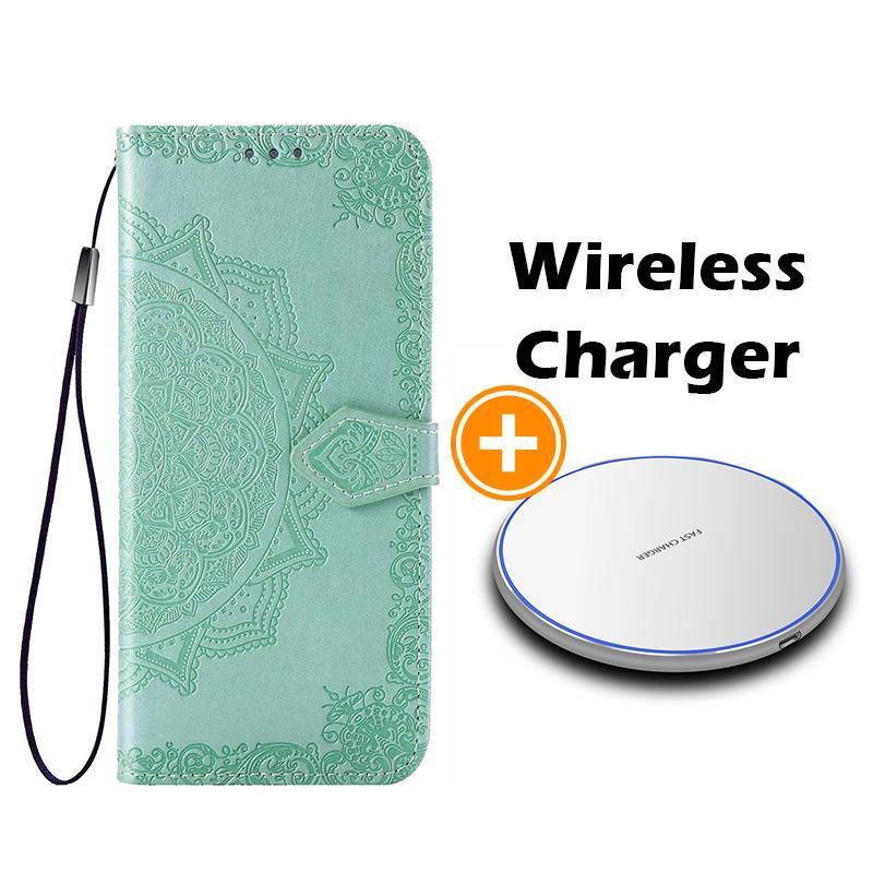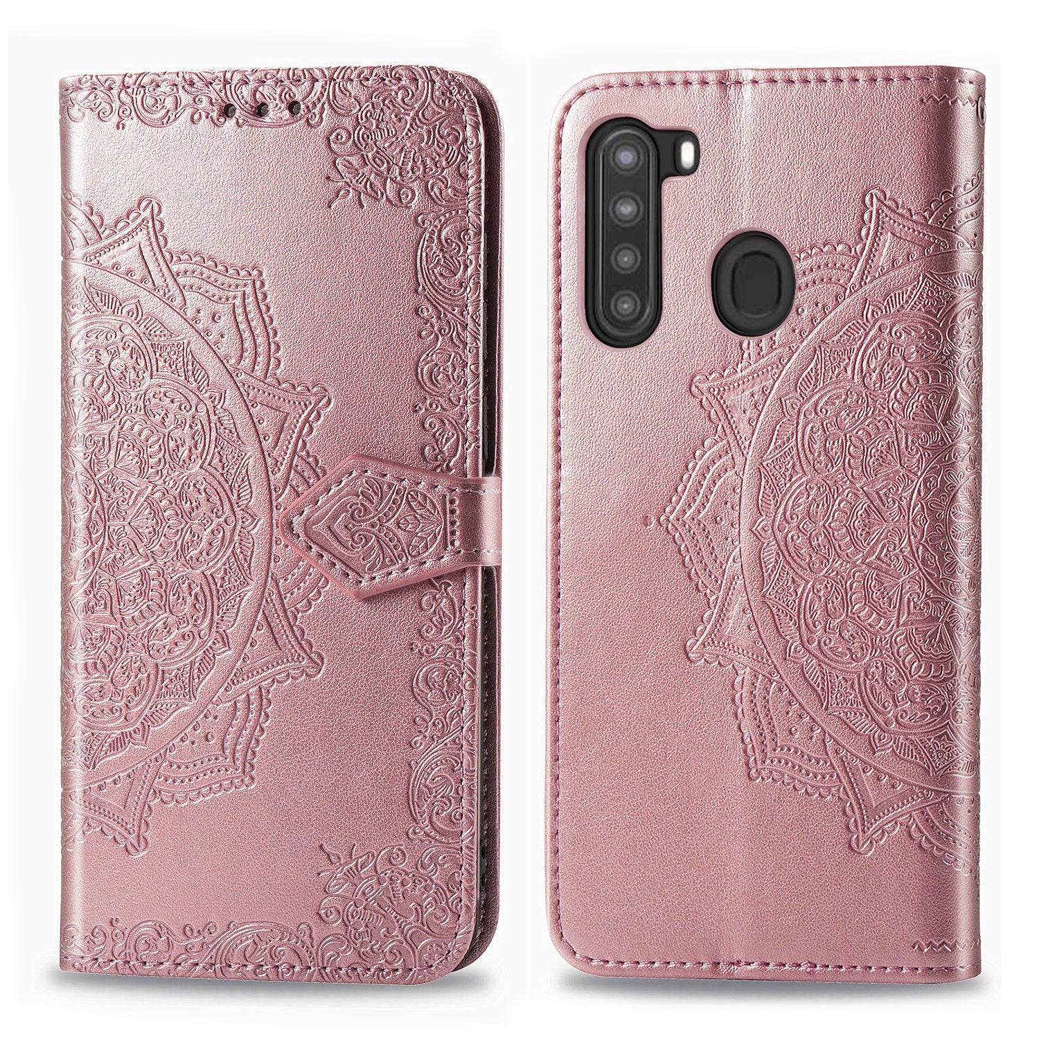 2022 Luxury Embossed Mandala Leather Wallet Flip Case for Samsung A21