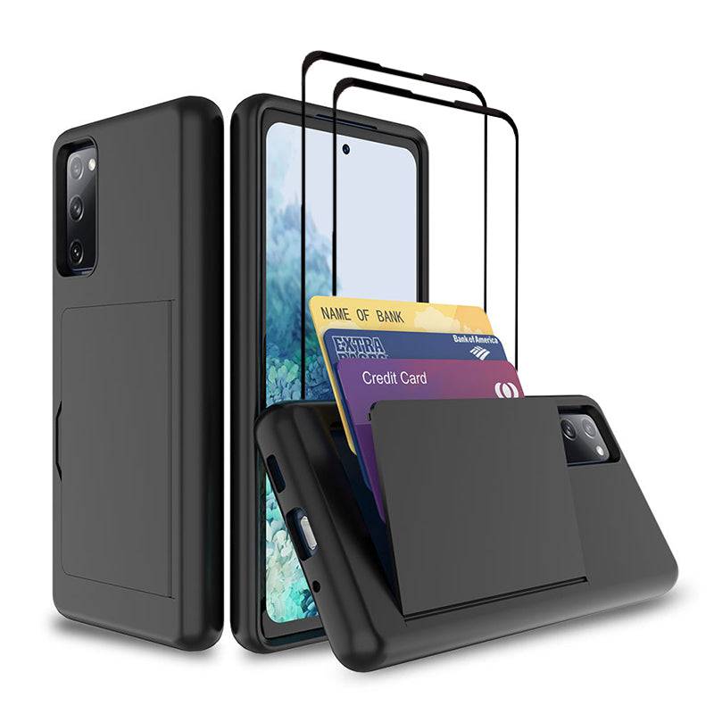 Armor Protective Card Holder Case for Samsung S20 FE With 2-Pack Screen Protectors
