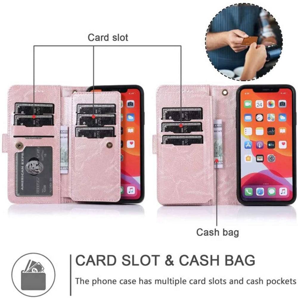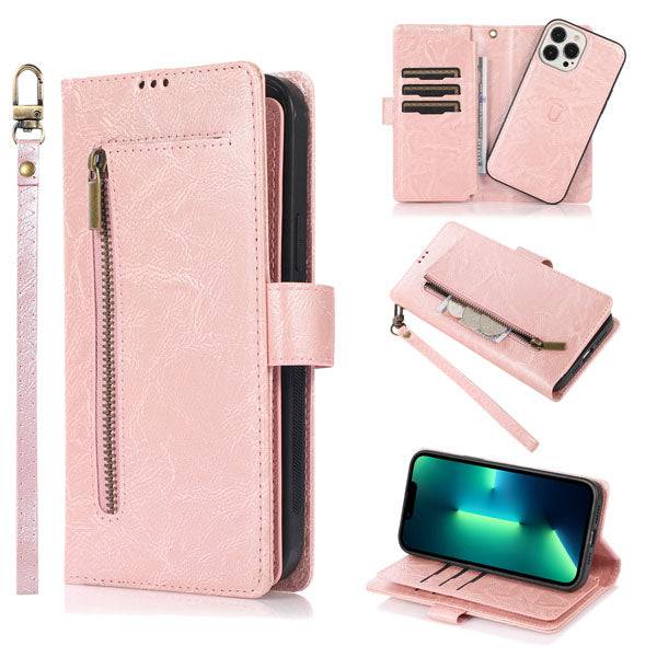 Detachable Flip Folio Zipper Purse Phone Case for iPhone