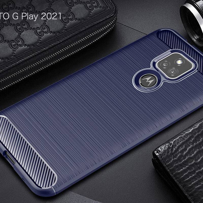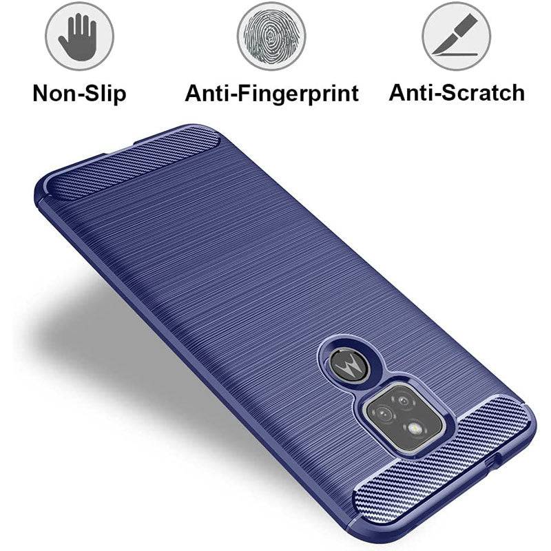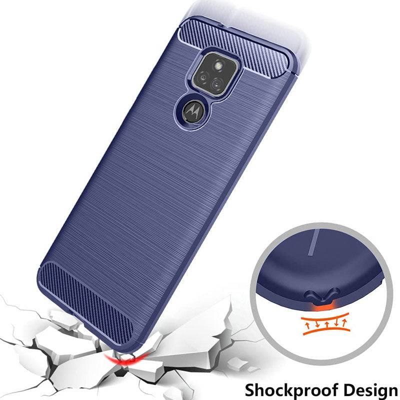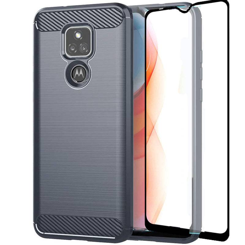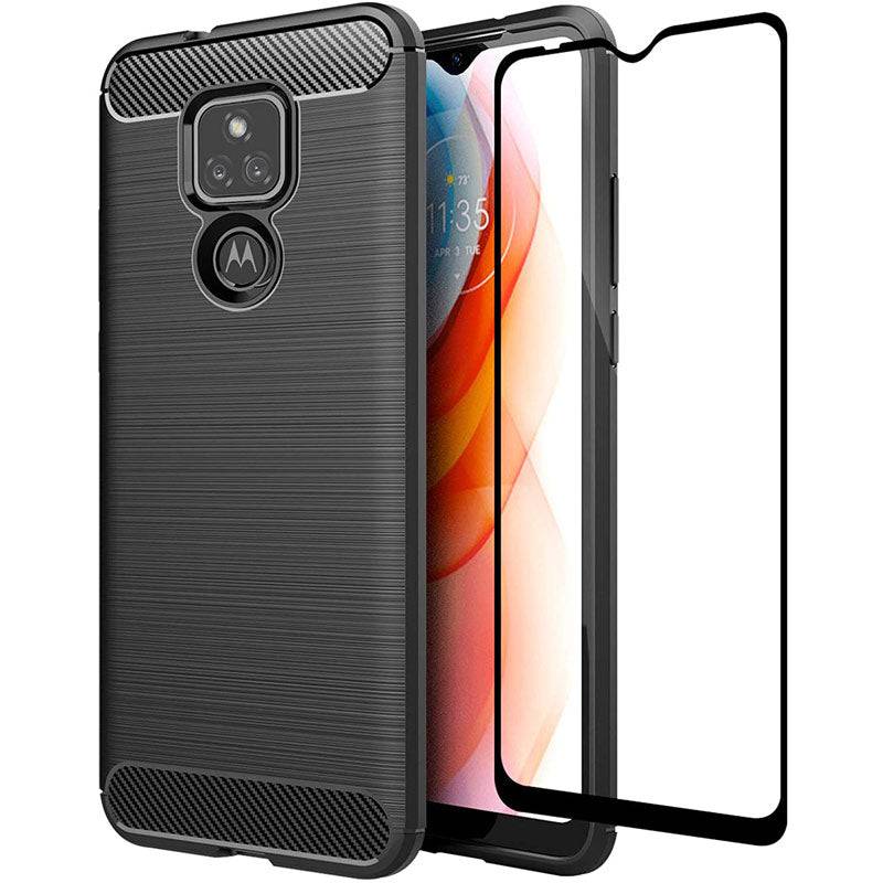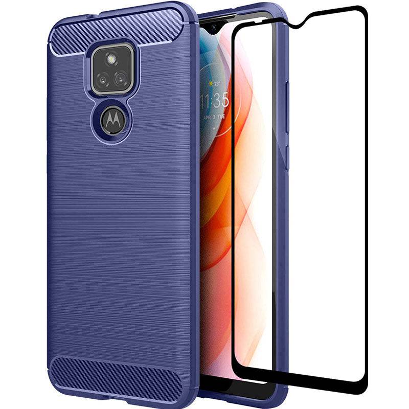 Luxury Carbon Fiber Case For Moto E7 With Screen Protector