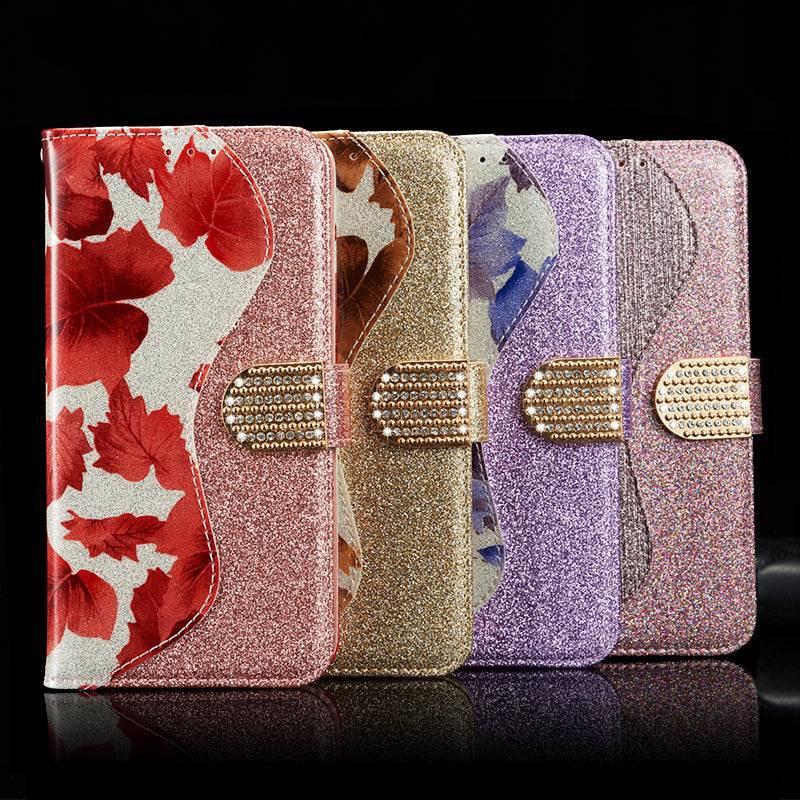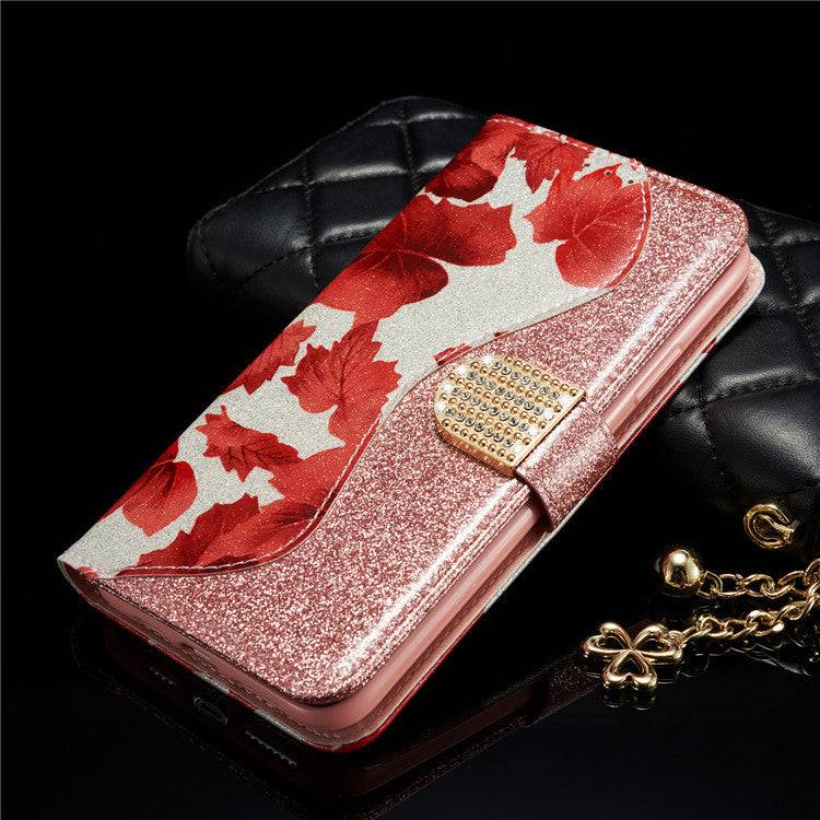 Leather Glitter Rhinestone Flip Case For Samsung