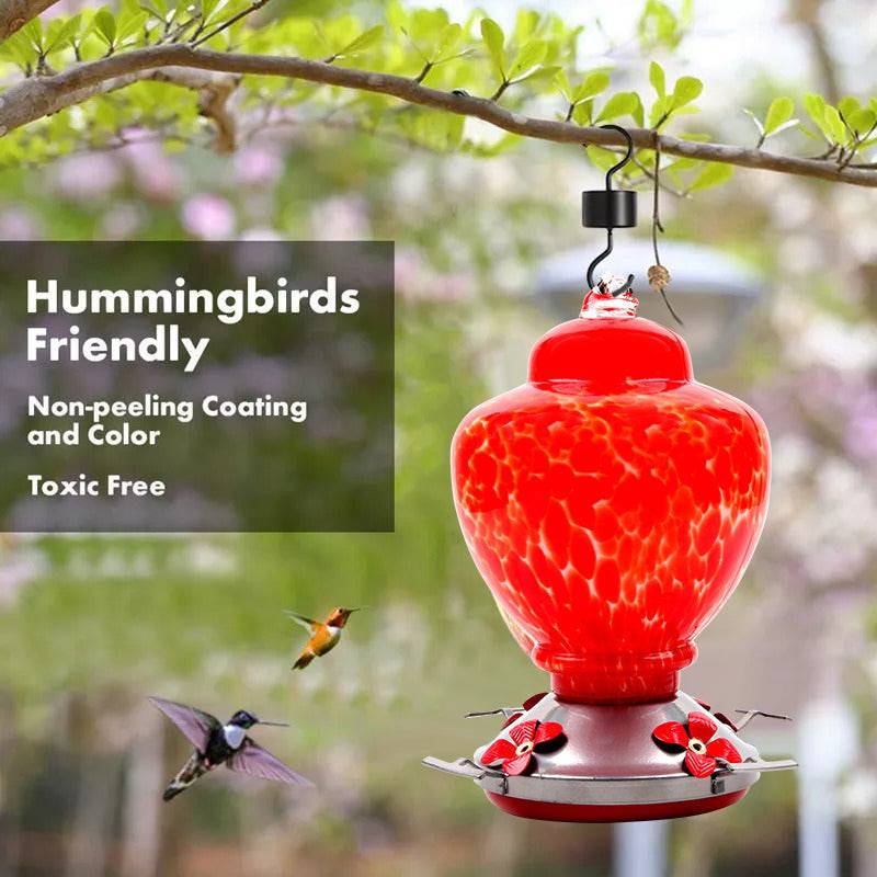 Shirem Hand Blown Glass Hummingbird Feeder - 38 Ounces