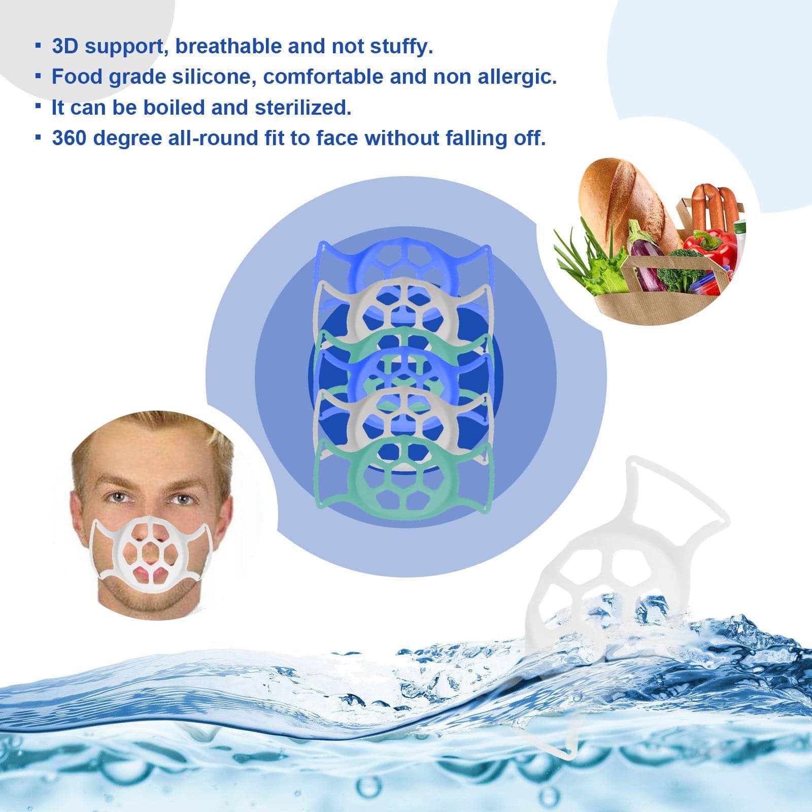 • Material de alta qualidade : suporte de suporte de moldura facial feito de material de silicone de qualidade alimentar, macio, suave e confortável, lavável e reutilizável.