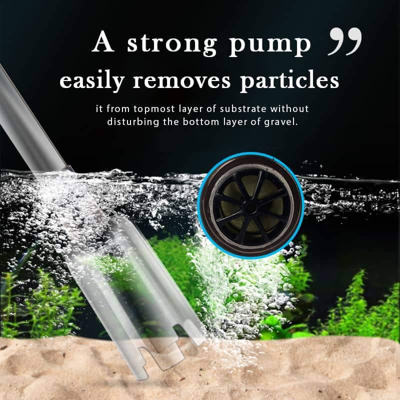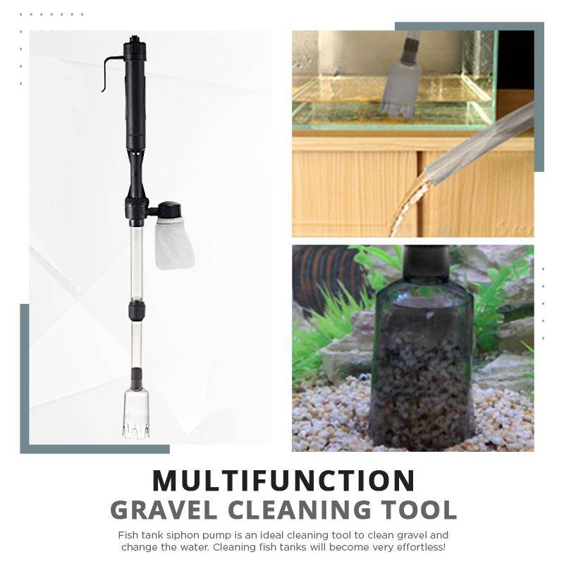 • Não se preocupe mais com seus tanques de peixes sujos, agora aspire quaisquer detritos em seu tanque de aquário com este limpador elétrico de cascalho de aquário, como ração para peixes, cocô de peixe ou folhas de plantas aquáticas mortas. O saco de filtro é especialmente projetado para detritos macios e podres debaixo d'água, nenhum resíduo volta para o seu aquário.