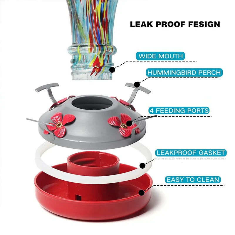 Alimentador de colibri de vidro soprado à mão - 25 onças