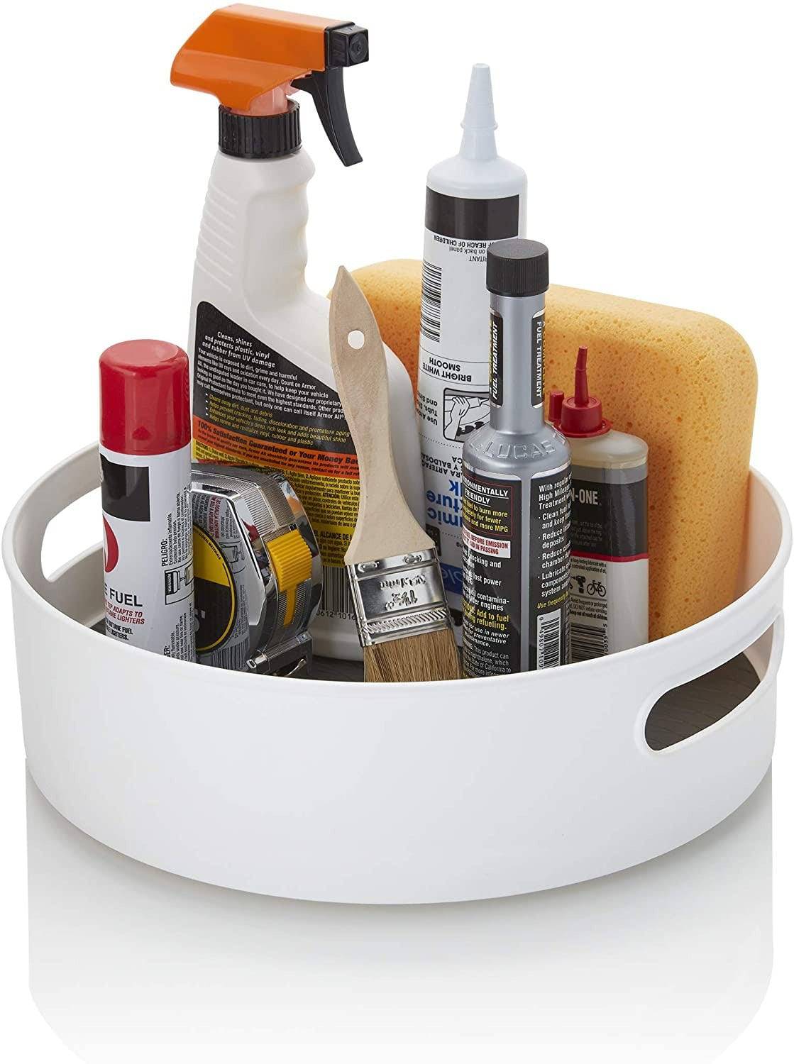 A plataforma giratória de armazenamento de 10 polegadas é uma solução de armazenamento perfeita para sua casa. Perfeito para conter e organizar itens soltos e manter os armários limpos e arrumados. Este organizador giratório e de deslizamento suave oferece fácil acesso a tudo que você precisa e possui alças para fácil transporte. Sua base antiderrapante fixa a plataforma giratória no lugar durante a rotação e sua borda elevada de 2,6 polegadas evita que itens caiam durante o uso. Mede 10 polegadas de diâmetro. Para limpar, use um pano úmido.